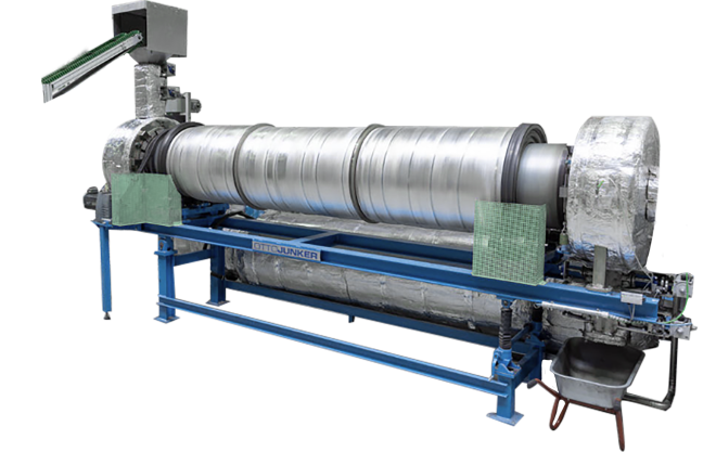 In dem Drehrohrofen werden unter inerten Bedingungen die Kunststoffe pyrolysiert und anschließend energetisch verwertet. Nur die Metalle bleiben zurück und können effizient eingeschmolzen werden.